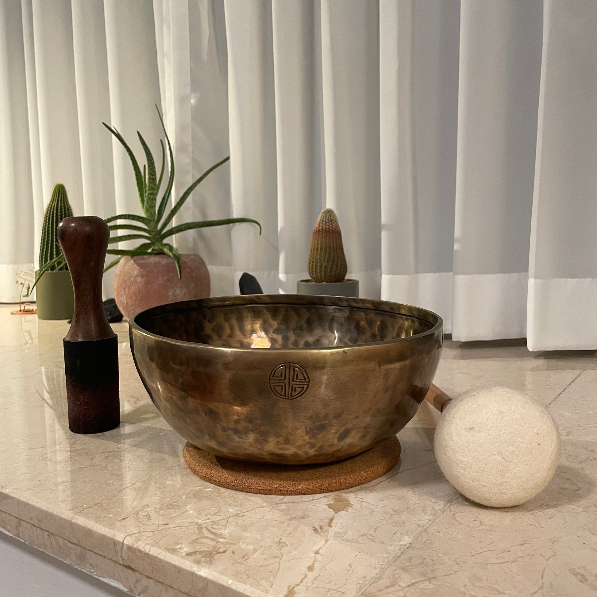 Singing bowls typically embody the four elements—Earth, Water, Fire, and Wind. However, bowls crafted during a full moon incorporate an additional fifth element: "Space" (or "Void"), which resonates with the throat chakra. Furthermore, the full moon's expansive and radiant energy infuses these bowls with a gentle yet refined vibration, symbolizing abundance and fulfillment.